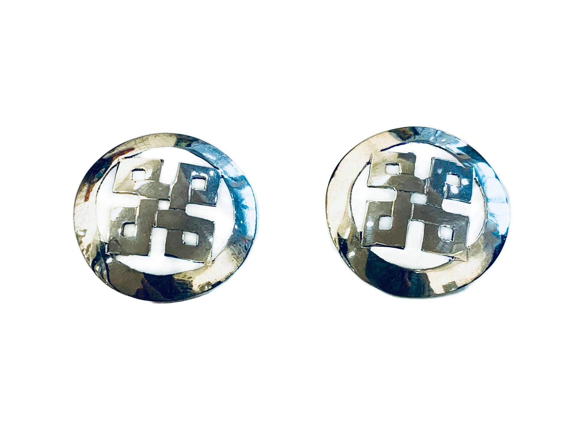 Large Handcrafted Geometric Sterling Silver Stud Earrings