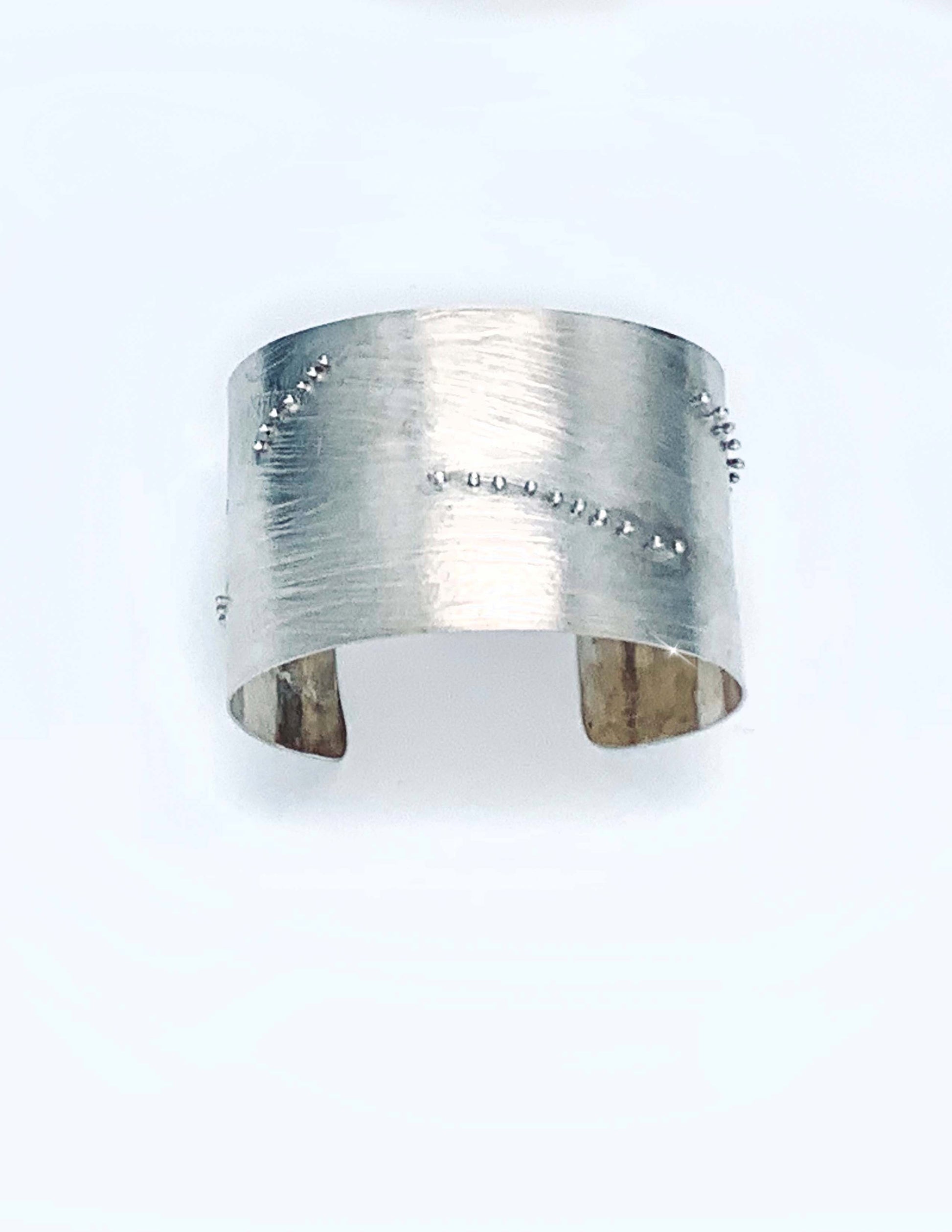 Statement, artisan created, brushed finish wide sterling silver cuff bracelet