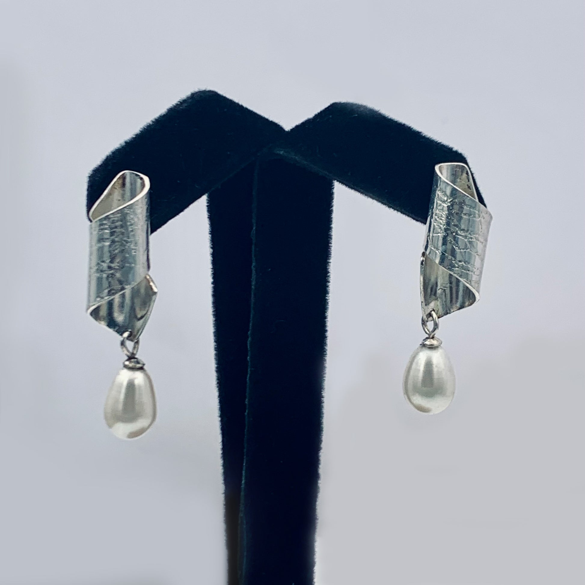 Spiral Sterling Silver Earrings with Teardrop White Pearls