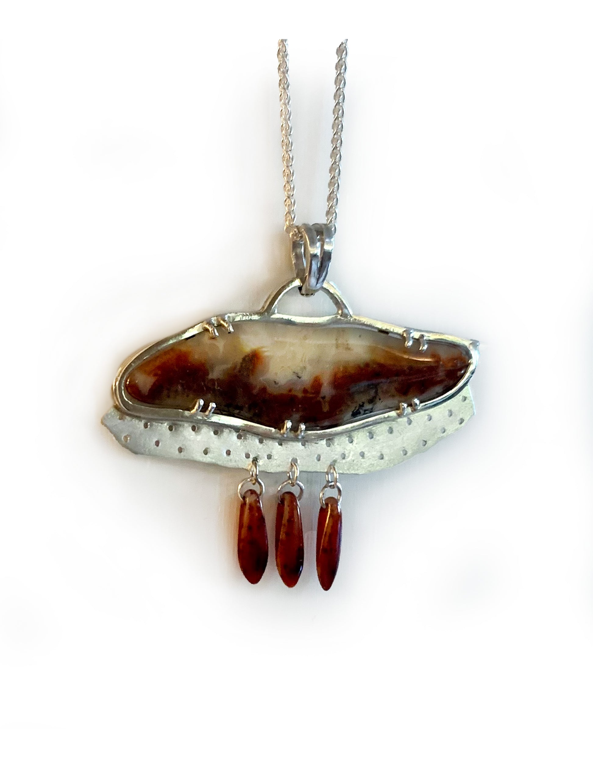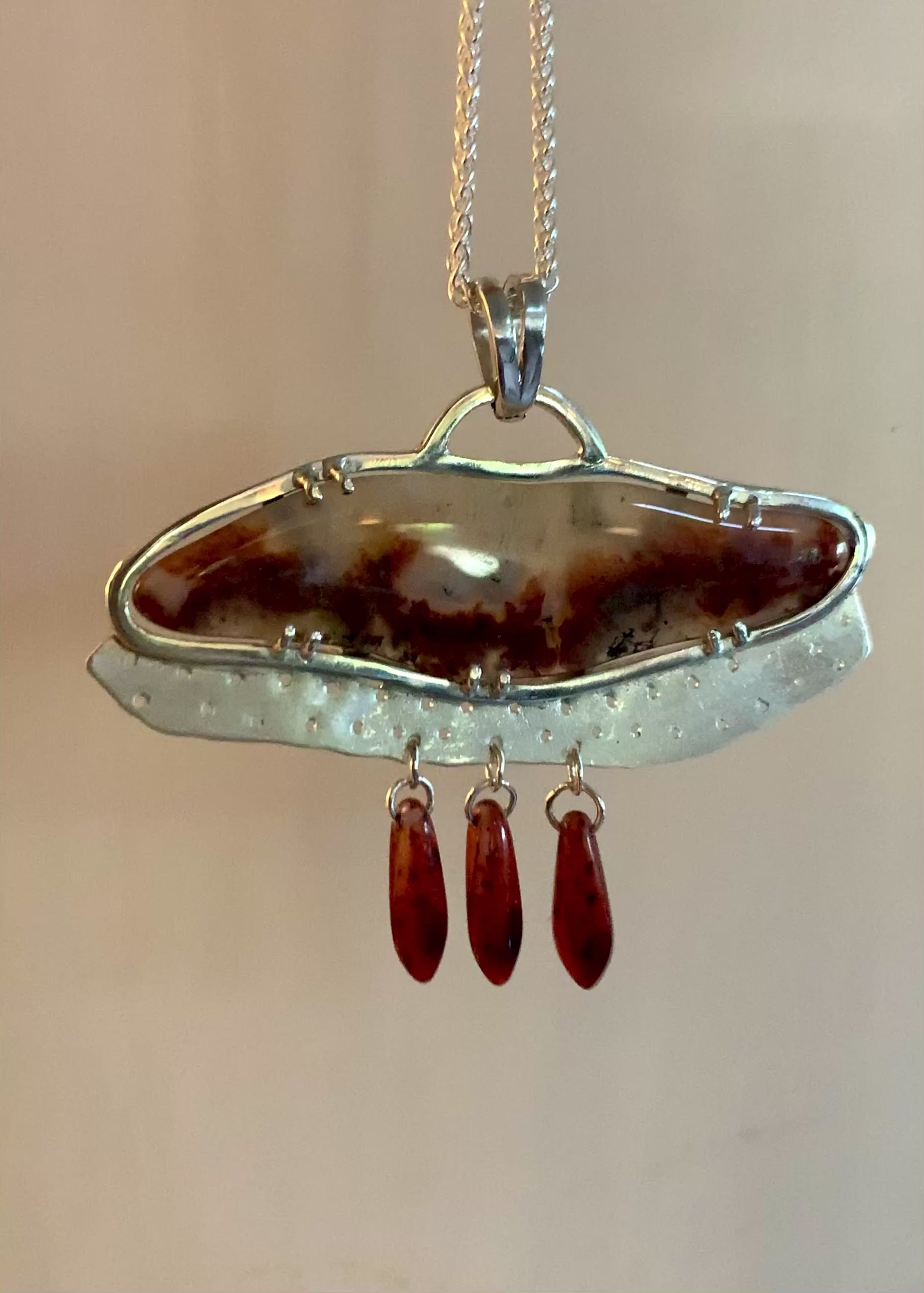 Handcrafted One-of-a-Kind Organic Sterling Silver and Agate Statement Pendant Necklace