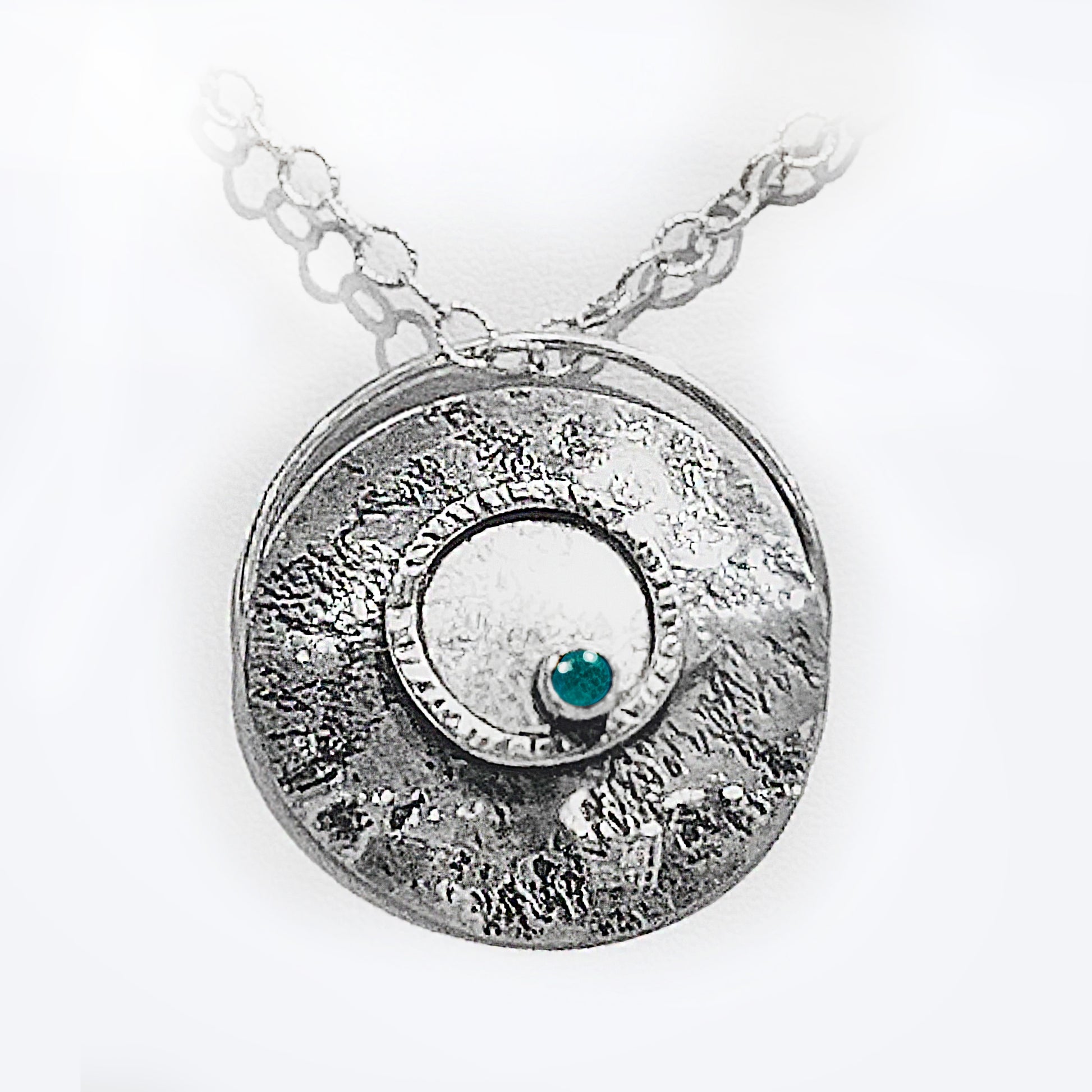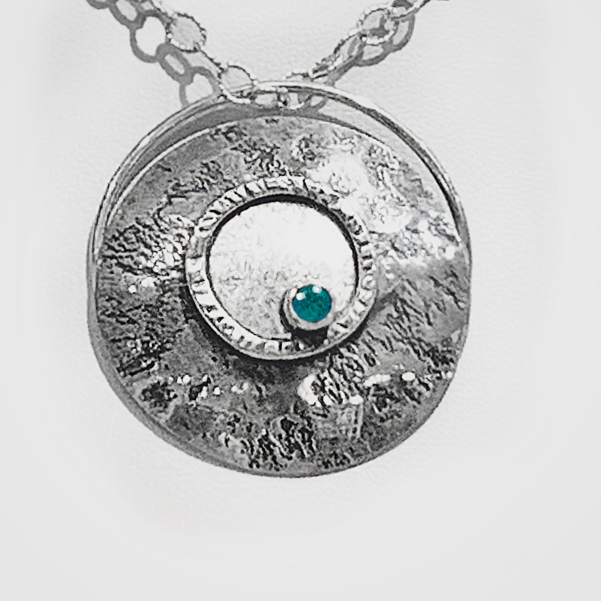 This necklace is perfect for those who appreciate modern elegance with an artisanal touch. The textured silver and deep blue topaz combination create a timeless yet bold design, suitable for both casual and formal occasions.