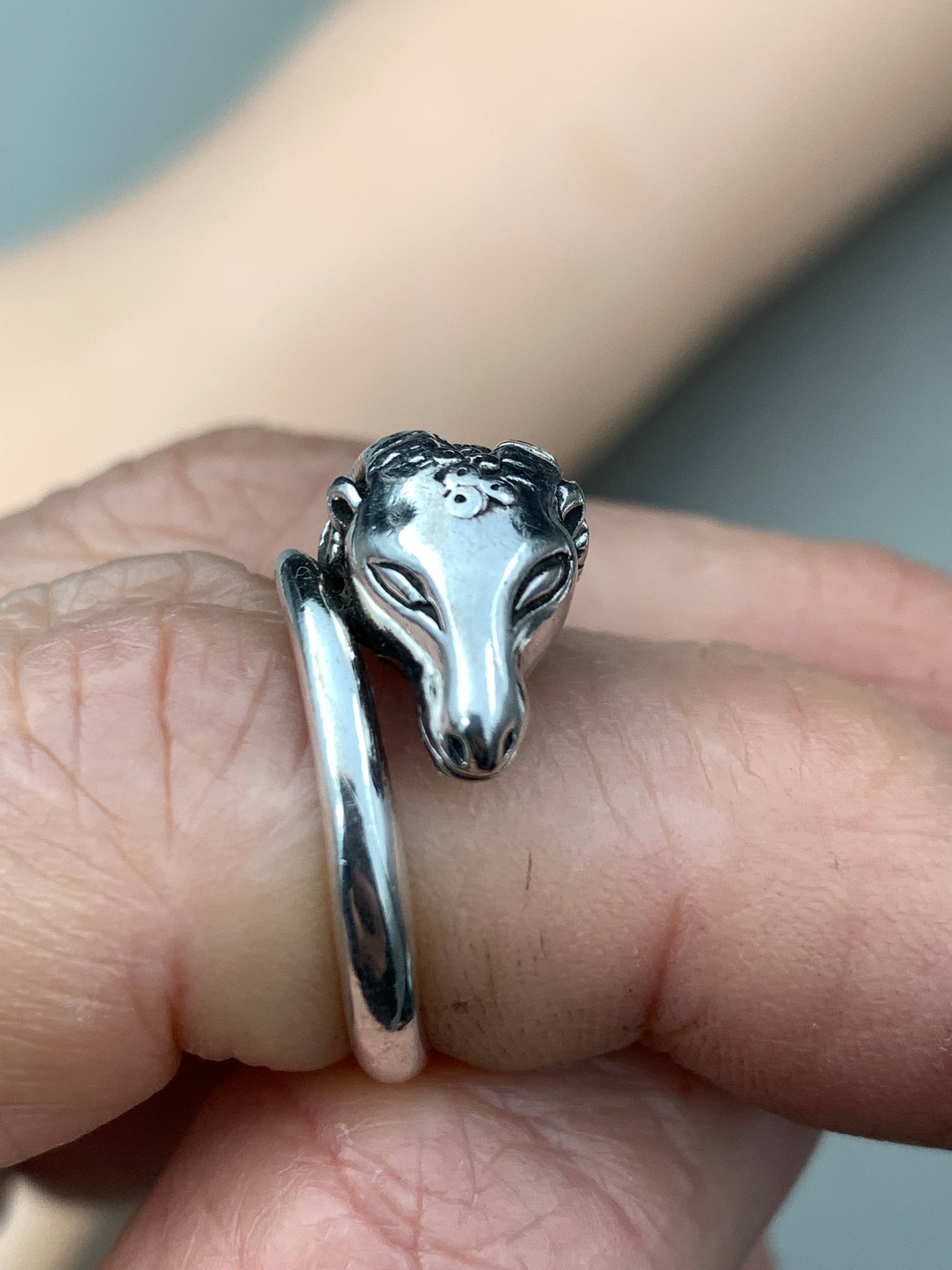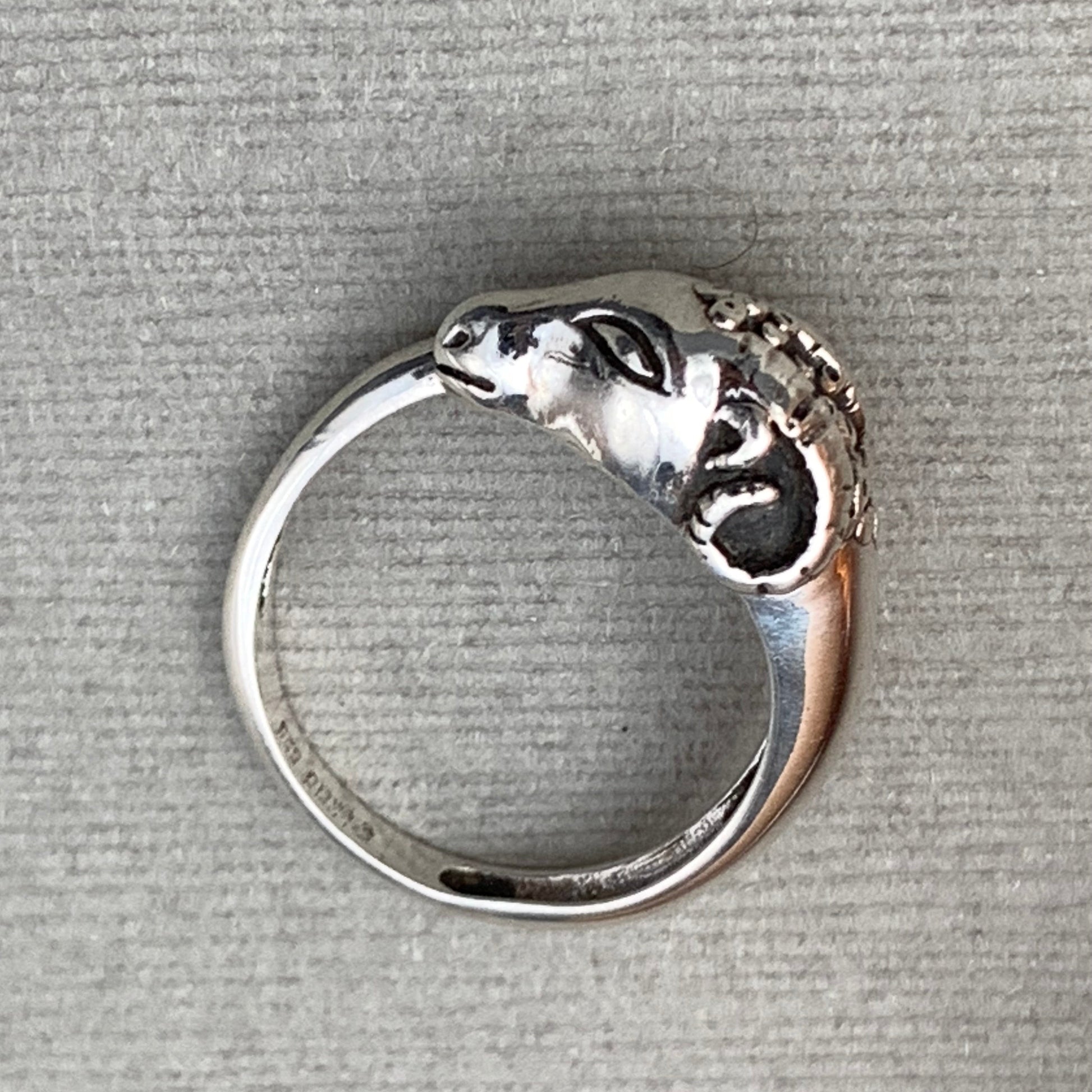 Vintage Ram's Head Carved Design Joachim S'paliu sterling silver ring