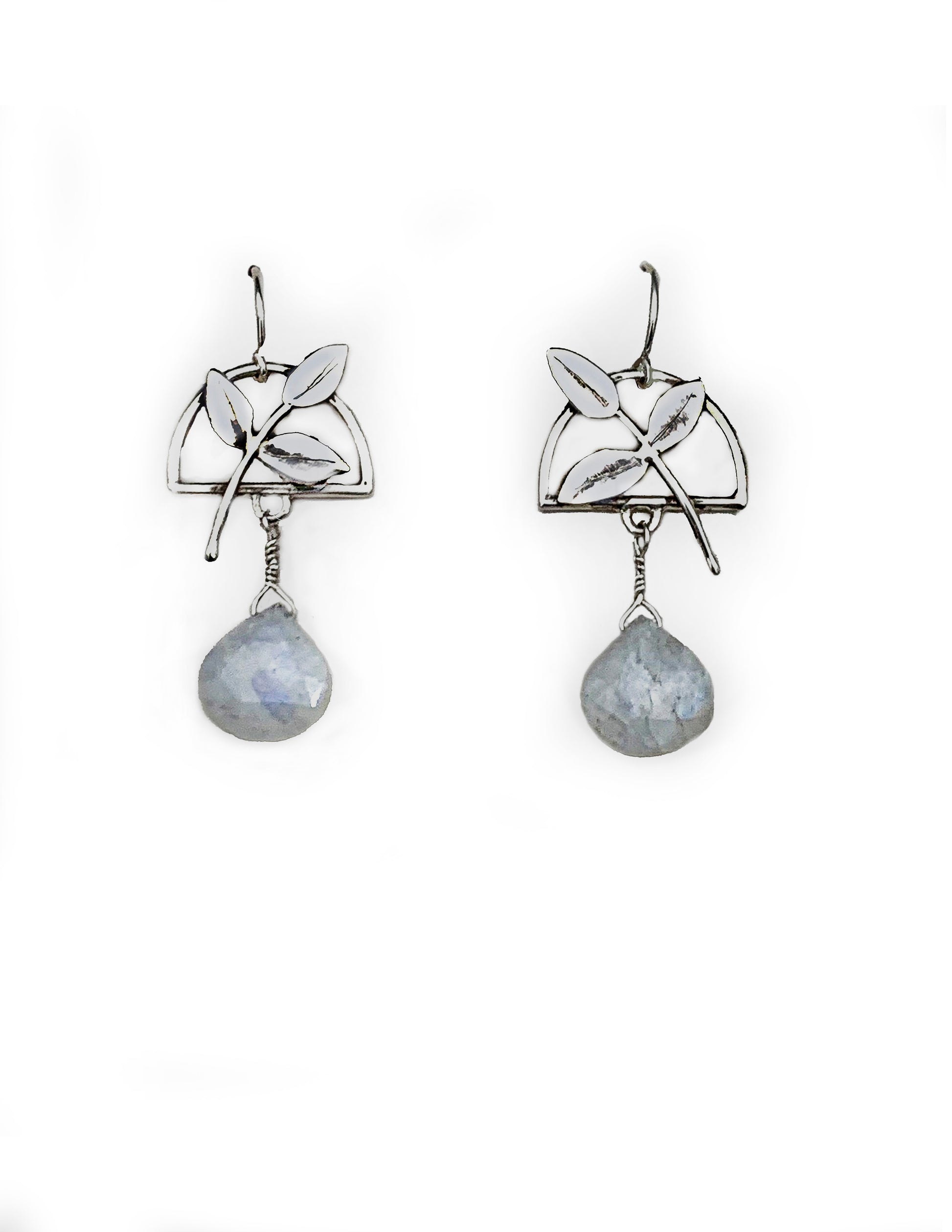 Whispers of Nature Earrings with Rainbow Moonstone Gemstones